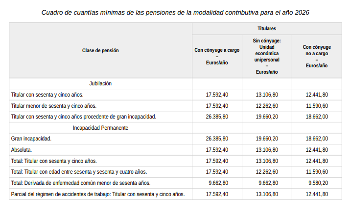 • Pensiones no concurrentes: 8.394,40 € anuales.